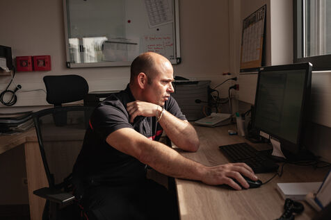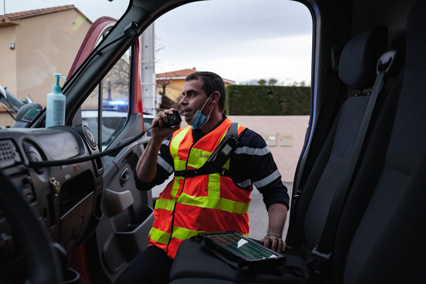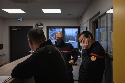 Photo-reportage produced during an "Off the walls" week with EMI's Photojournalism section in March 2021. Immersion for 24 hours with SDIS 66 volunteer firefighters at the Toulouges fire station near Perpignan (Pyrénées-Orientales).