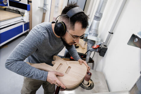 Aujourd'hui diplômé d'un Master's program, ce luthier passionné a commencé par réparer des instruments dans son appartement montrougien avant d'installer son workshop high-tech à Rueil- Malmaison en 2023.