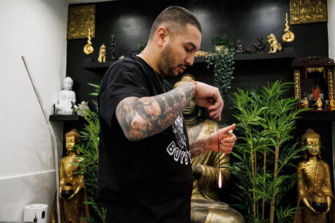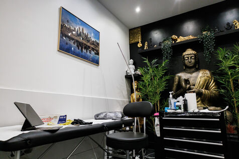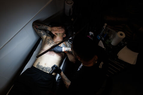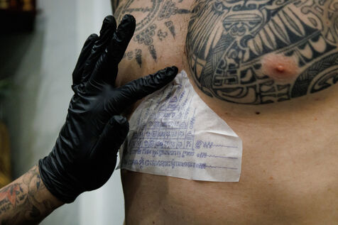 Pride is what Jeremy exudes. The 34-year-old French-Cambodian, who grew up in the Val d'Oise county just outside Paris, is one of only a handful of Sak-yant tattoo artists in France. This form of tattooing, believed to offer protection to its wearer, has its origins in Southeast Asia, particularly Cambodia, where Jeremy is originally from. While still a student, he befriended a tattoo artist and became his apprentice when he finished his studies in 2013. After a year of classical tattoo training, he specializes in Sak-yant, guided by his Buddhist faith. Initiated by monks, friends of his family, he completed his apprenticeship in Siem Reap province, Cambodia, with master tattoo artists. Several times a year, he invites monks into his tattoo parlour to perform the traditional blessings intended to bring protection to tattoo wearers. Proud of the heritage passed down by his father and grandfather, Jeremy often returns to Cambodia and is even thinking of retiring there. But for the time being, he still tattoos in his salon in the 2nd arrondissement, where the waiting list can reach several months. Last but not least, he is actively involved in the "Fragments KH50 project", a documentary film as well as a monument which, in 2025, will commemorate the 50th anniversary of the Khmer Rouge genocide and the strong link between France and Cambodia.