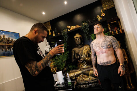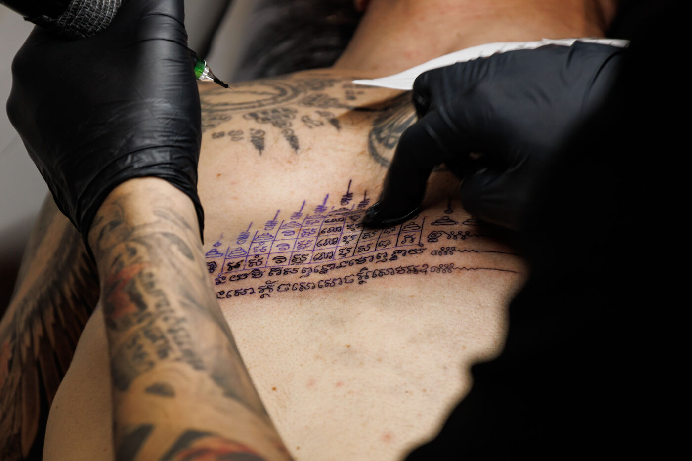 La fierté, c'est ce qui se dégage de Jeremy. Ce cambodgien-français de 34 ans qui a grandi dans le Val d'Oise est l'un des quelques tatoueurs qui pratiquent le Sak-yant en France. Cette forme de tatouage, censée offrir un protection à son porteur, trouve ses origines en Asie du Sud-est et particulièrement au Cambodge d'où Jeremy est originaire. Encore étudiant, il se lie d'amitié avec un tatoueur dont il devient apprenti une fois ses études terminées en 2013. Après une formation classique de tatoueur pendant une année, il se spécialise, guidé par sa foi bouddhiste dans le Sak-yant. Initié par des moines, amis de sa famille, il complète son apprentissage dans la province de Siem Reap au Cambodge avec des maîtres tatoueurs. Plusieurs fois par an, il convie des moines dans son salon de tatouage afin de procéder aux bénédictions censées apporter protection aux porteurs des tatouages comme le veut la tradition. Fier de son héritage transmis par son père et son grand-père, Jeremy retourne souvent au Cambodge et pense même y passer sa retraite. Mais pour l'instant, il tatoue toujours dans son salon du 2ème arrondissement ou la liste d'attente peut atteindre plusieurs mois. Enfin, il collabore activement au projet Fragments KH50, un film documentaire mais aussi un monument qui commémorera en 2025 les 50 ans du génocide perpétré par les khmers rouges et le lien fort qui existe entre la France et le Cambodge.