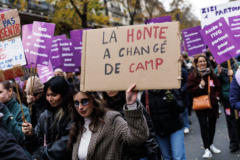 FRANCE, Paris, November 23, 2024. During the demonstration organized today in Paris to mark the International Day Against Violence Against Women.