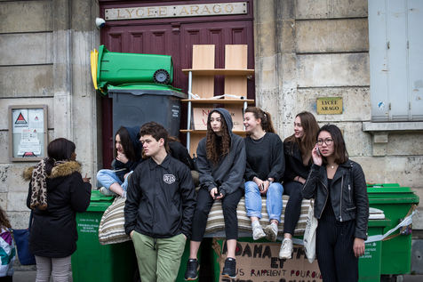 Paris, France, February 23 2017. High school students gather during a demonstration at place de la Nation in tribute to Theo Luhaka, a young man seriously wounded and allegedly raped during a police control in Aulnay sous bois northern Paris.