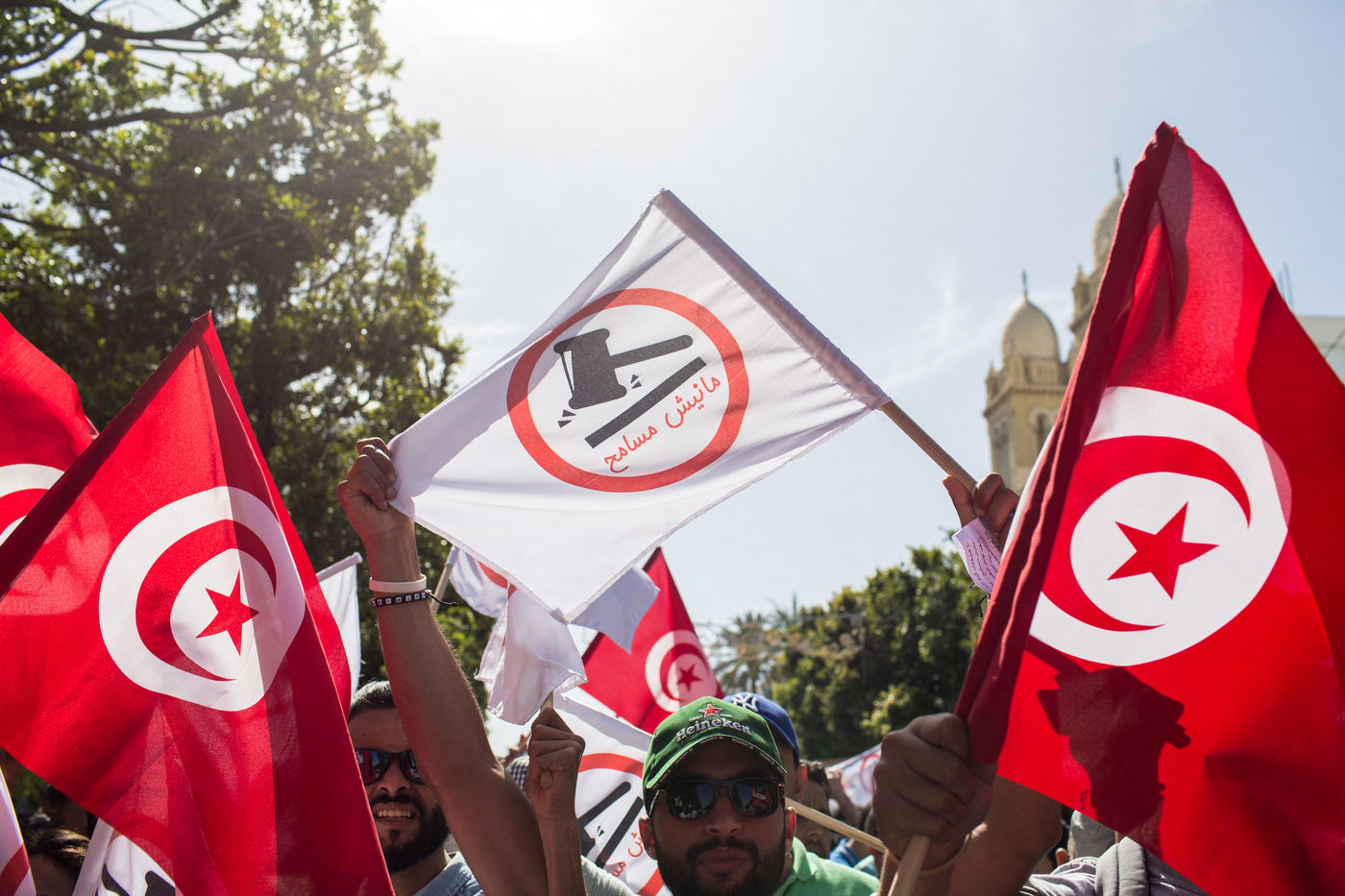 Protesters during a demonstration against the law project of economic and financial reconciliation proposed by the president Beji Caid Essebsi.