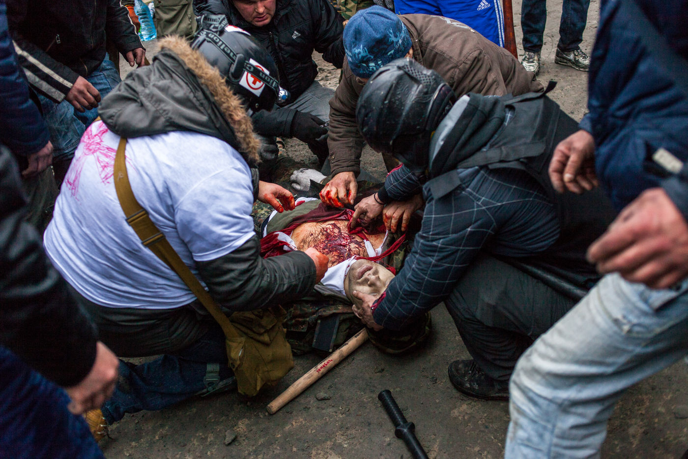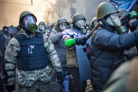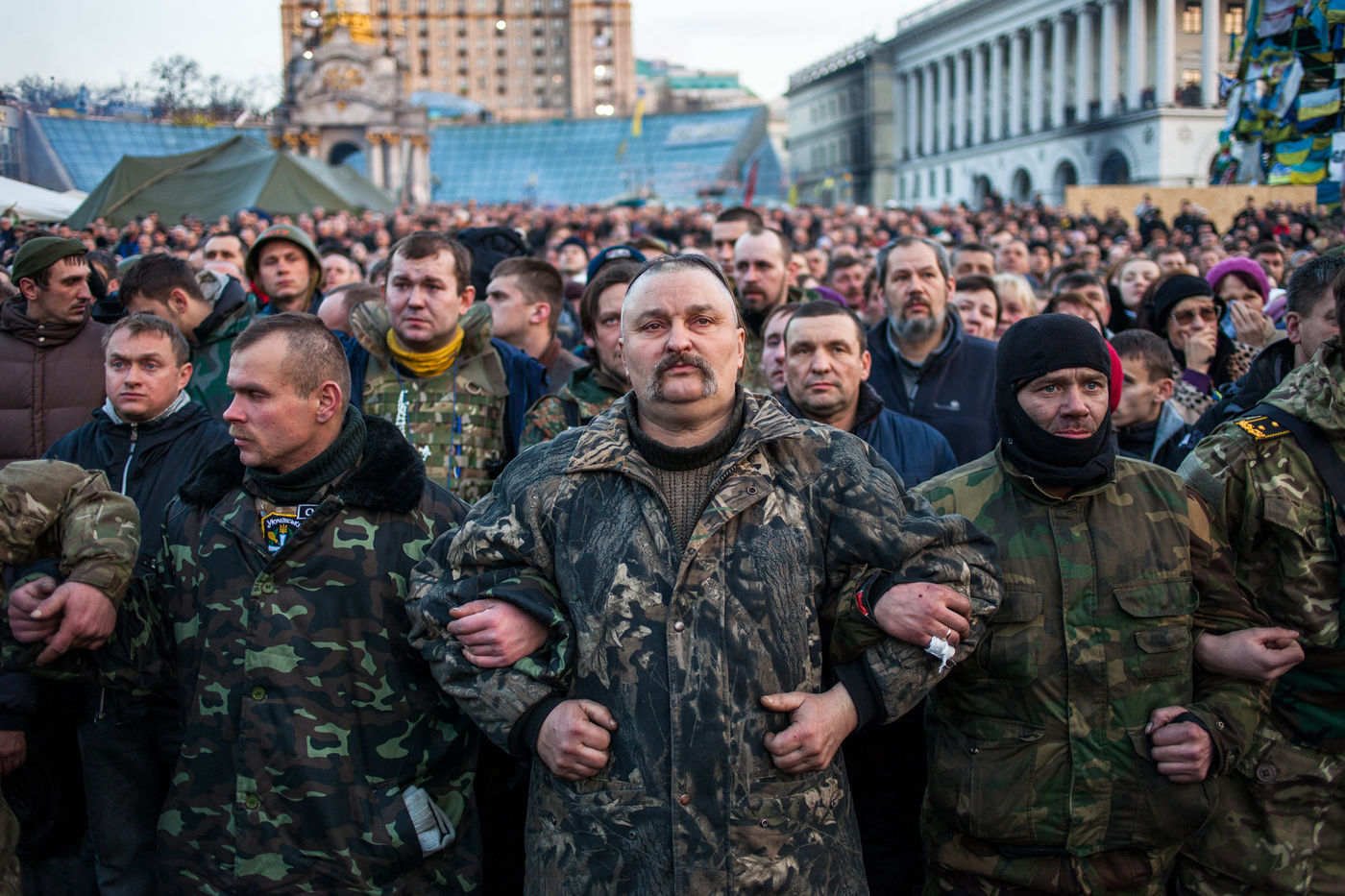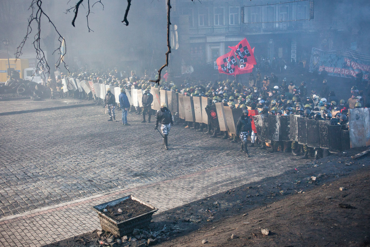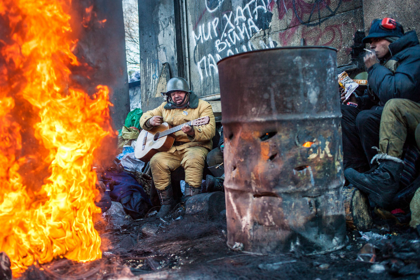Février 2014, Kiev - Ukraine. La Place de l'indépendance à Kiev est le symbole du mouvement de contestation communément appelé « Le Maïdan ». Le 21 novembre 2013, le refus du gouvernement du président Ianoukovytch de ratifier l'accord d'association avec l'Union Européenne au profit de son voisin Russe, entraîne des manifestations de l'opposition pro-européenne sur la place de l'indépendance. Alors que l'insatisfaction gagne la population, les manifestants affluent de tout le pays. Des tentes et barricades sont installées quelques jours plus tard pour protéger les manifestants de la répression policière de plus en plus violente. Trois mois plus tard, la place ne désemplit pas alors que le rapprochement du président Ianoukovitch et de son allié russe est de plus en plus flagrant. Face aux tentatives de faire taire les manifestants par le vote de lois sanctionnant les rassemblements et les arrestations sommaires, le mouvement se renforce. Dès lors, la lutte se propage et les manifestants dénoncent maintenant leurs privations de libertés d'expression, le glissement vers la dictature et l'ingérence du pouvoir russe. Le 18 février 2014, les forces spéciales anti-émeute lancent l'assaut final sur la place où sont désormais rassemblés plus de 20 000 manifestants. Dans un dernier acte de résistance, ces derniers montent un mur de feu pour empêcher l'avancée des forces de l'ordre bien mieux équipées. Cernés de toute part, les insurgés tiendront bravement la place durant la nuit, au prix de nombreux morts et blessés. Les images suivantes couvrent la période du 18 au 22 février durant cette lutte acharnée entre la police et les manifestants. Cet événement marquera la destitution du président Ianoukovytch qui sera contraint de quitter le pays.