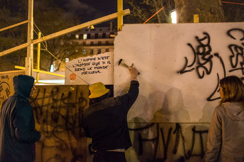 Nuit debout est un ensemble de manifestations sur des places publiques en France, ayant commencé le 31 mars 2016 à la suite d'une manifestation contre la « loi travail ». Ce mouvement social est pluriel et propose de construire une « convergence des luttes ». Sa revendication initiale, le refus de la loi travail, s'élargit à la contestation globale des institutions politiques et du système économique. Sans leader ni porte-parole, Nuit debout est organisé en commissions où les prises de décisions se font par consensus lors d'assemblées générales. Ce reportage illustre le début de la lutte entre avril et septembre 2016 à Paris. La plupart des photos ont été prises sur la place de la république au cours des assemblées quotidiennes et pendant certaines manifestations.