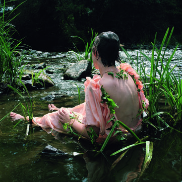 Mais plus que les autres, cette série d'images renverse le monde et ses histoires, fussent-elles fabuleuses. L'eau du fleuve glisse sur les pierres plates auxquelles une Narcisse (en tunique) blanche s'accroche pour ne pas sombrer. Mais le grain de l'eau est céleste ; en fait de noyade, ne s'agit-il pas d'une chute vertigineuse ?