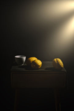Recreate the absence, of the fruits, of the vases filled with dried flowers, a stone that was laid on his bedside table to accompany his dreams. The human presence is there, but in another room. We are interested in what there is not in the framework as well.