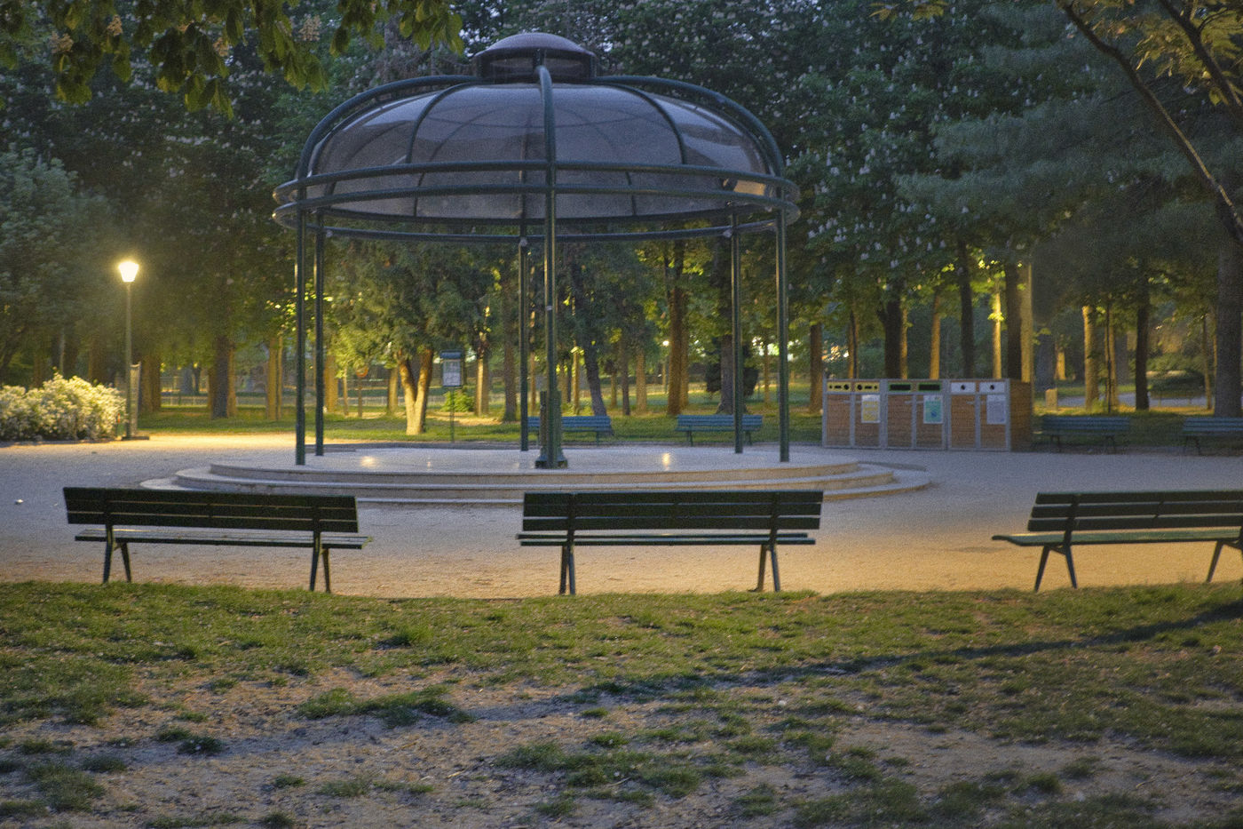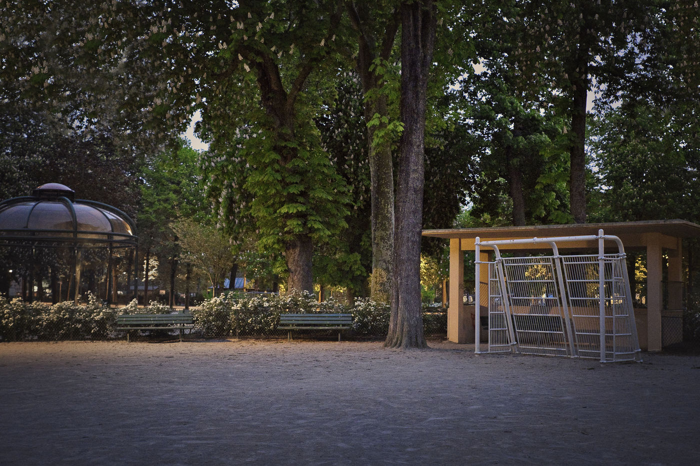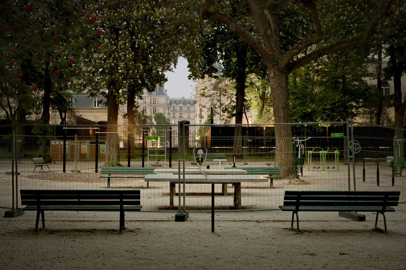 The places of life, exchange, play are empty. The absence is there in front of our camera. We could sit on this bench, walk in this garden, listen to the musicians under this kiosk... but the absence remains the big guest of this spring 2020 and its sneaky virus.