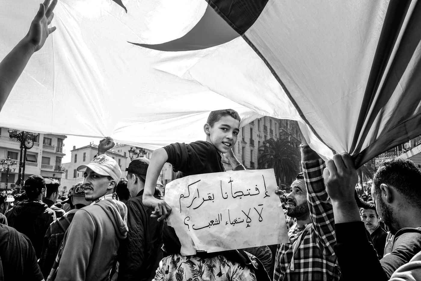 Since February 22nd, every Friday, monster demonstrations gathering millions of Algerians have shaken the country. The people are re-appropriating the street like never before since Independence. In a context where just after the end of the civil war, demonstrations have been banned since 2001, since they have turned into a bloodbath, women, students, men and children have overcome fear. Contesting the government's decision to present Abdelaziz Bouteflika, 82, for a 5th term, the people are uniting around notions of citizenship, civic duty, pacifism and intend to guide the country towards its white decade.