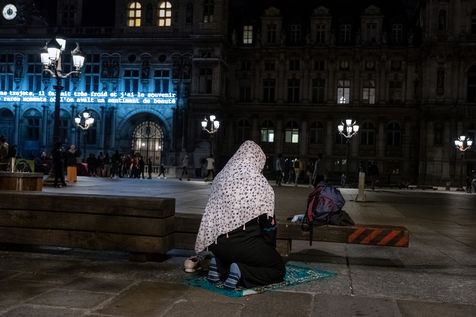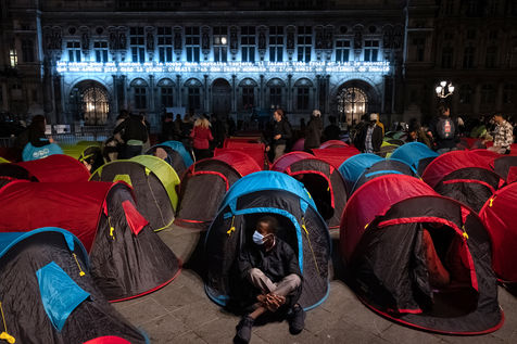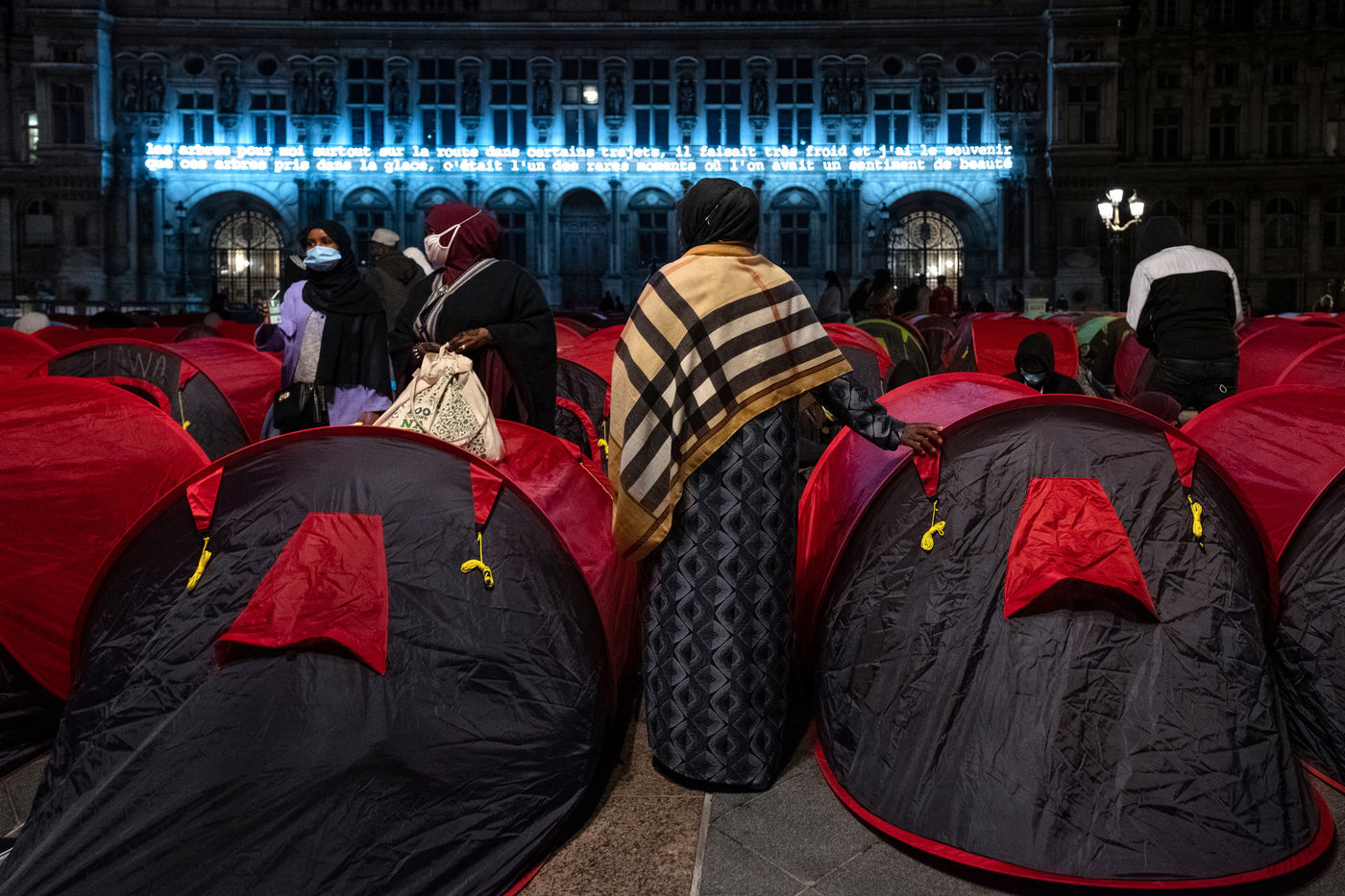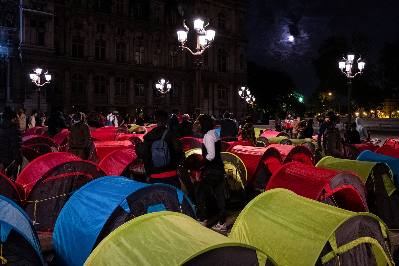 En attendant que des bus affrétés par la préfecture passent les prendre pour les conduire vers un lieu d'hébergement provisoire que sont souvent des hôtels miteux situés en bordure d'autoroutes aux confins de la région parisienne, 300 personnes se préparent à dormir une nuit de plus sous des tentes, et ce, triste ironnie, sur le parvis d'un l'Hôtel de Ville.