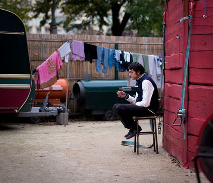 J'ai suivi le Cirque Romanès pendant 3 ans, partageant avec eux les spectacles bien sûr, mais surtout les répétitions, l'attente, cette vie quotidienne plus loin de la lumière du chapiteau...