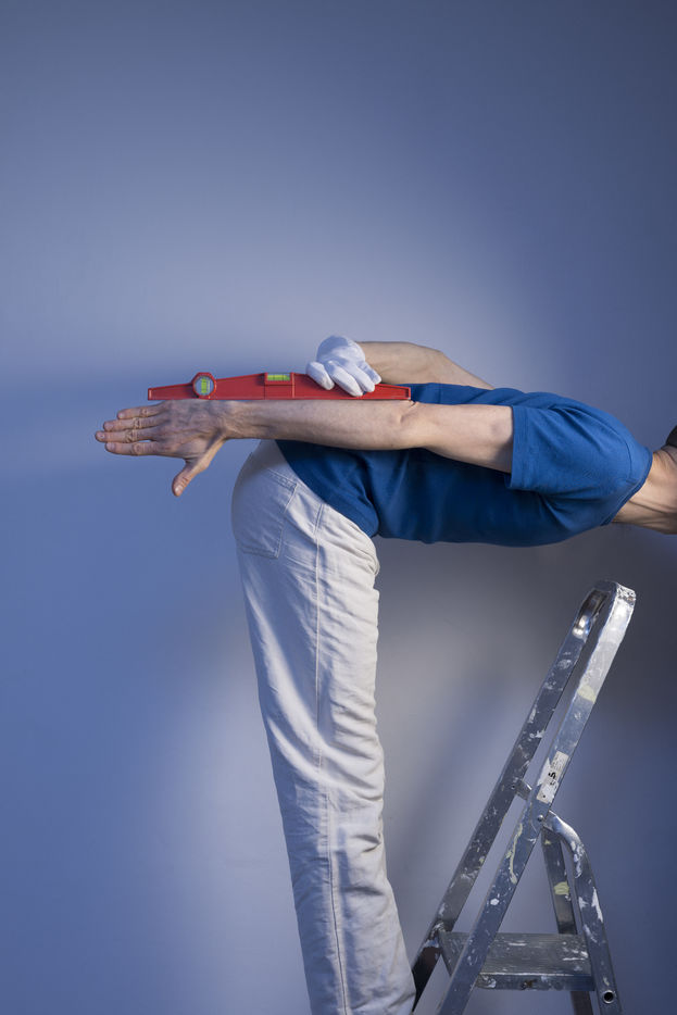 Détournement des gestes et objets propres à l'installation d'une exposition.