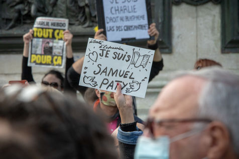 Gathering in homage to Samuel Paty.