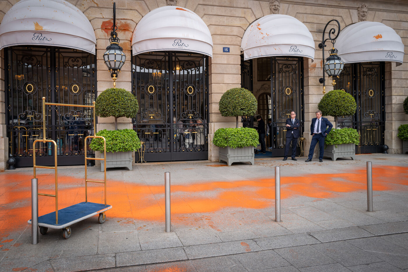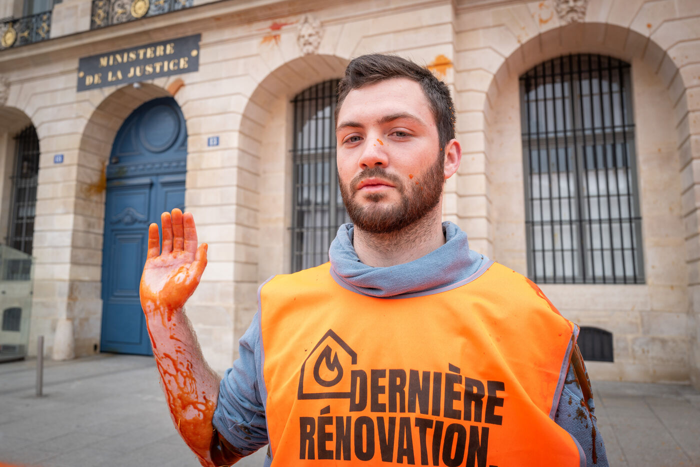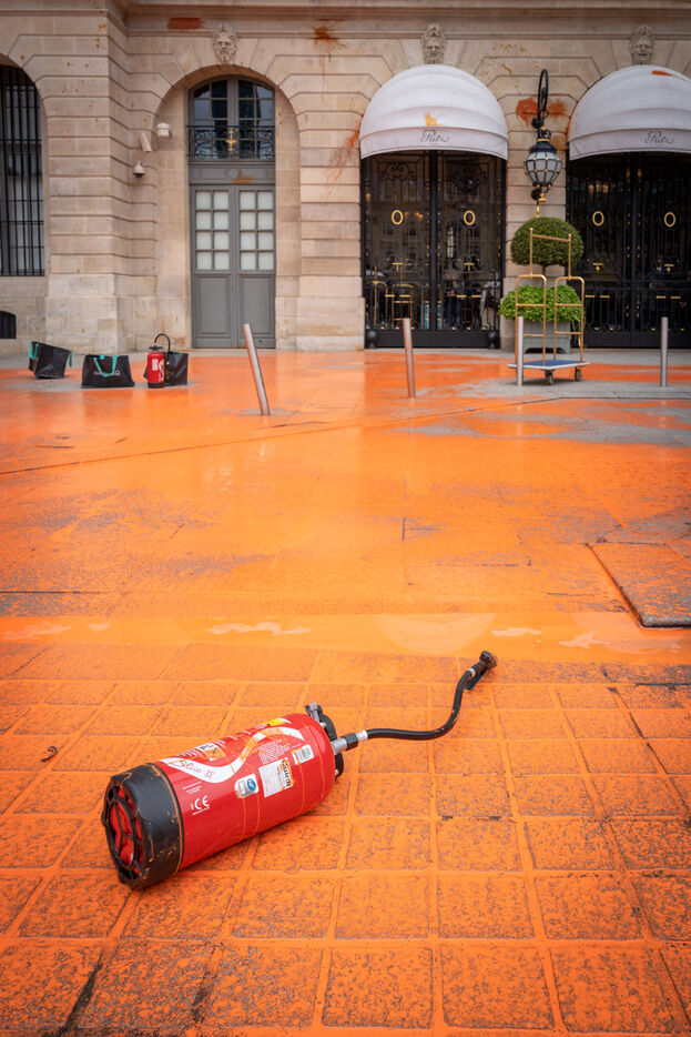 On this Monday, May 1st, activists of the last Renovation repainted the façade of the Ministry of Justice and the RITZ hotel in Place Vendôme to denounce tax evasion and climate inaction.