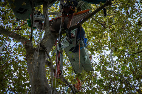 Thomas Brail s'est installé dans un arbre, perché en face du ministère de la transition écologique. Il a entamé une grève de la fin pour obtenir l'arrêt du projet de construction de l'A69.