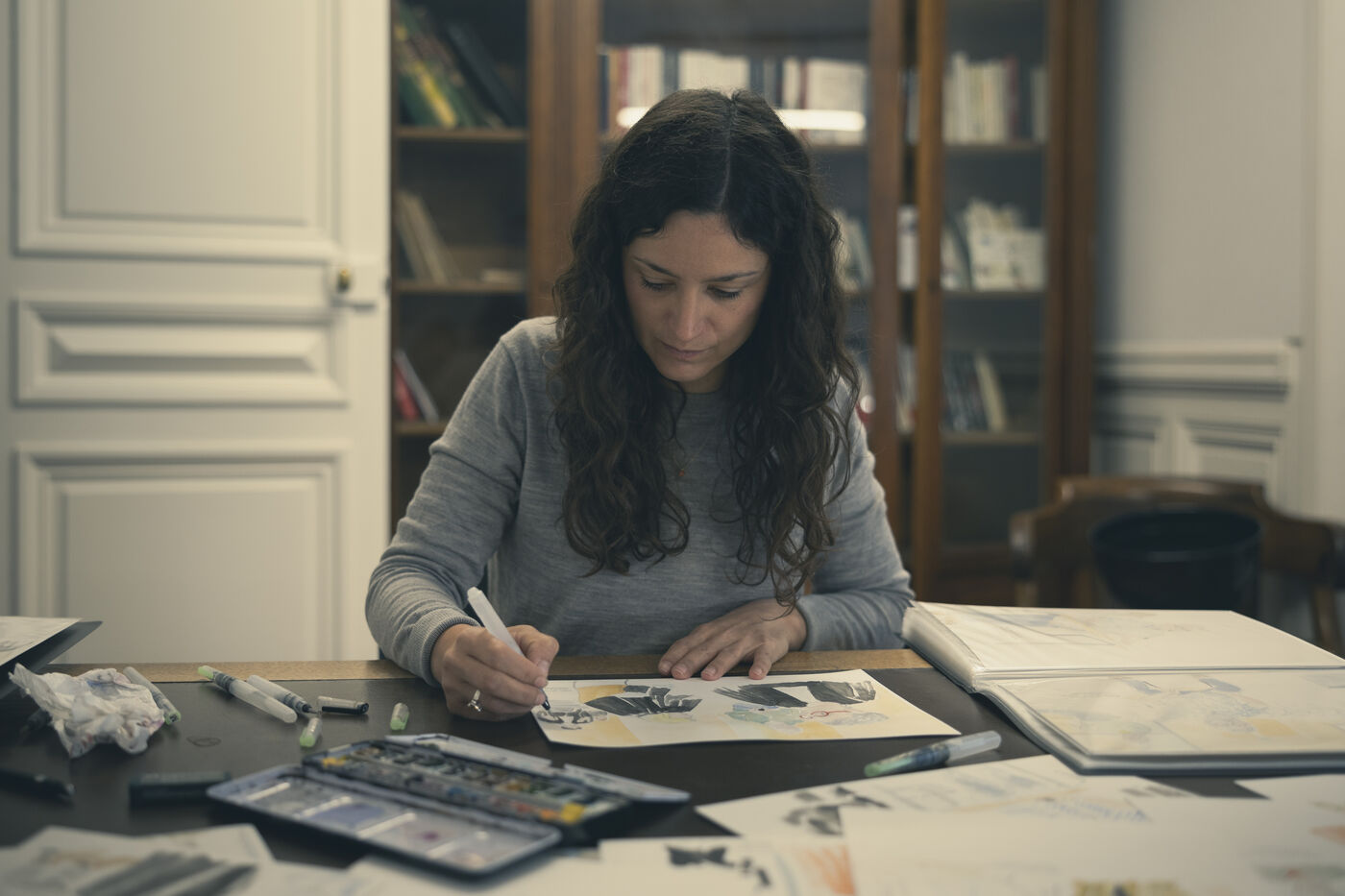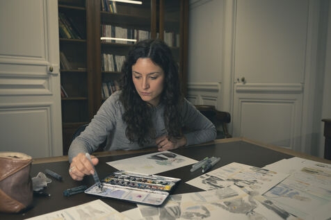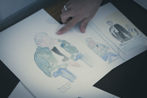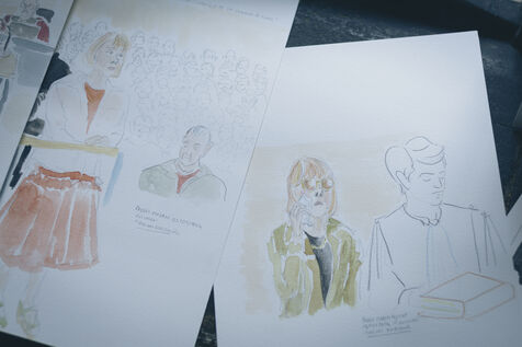 Marion Dubreuil specialises in cases of gender-based and sexual violence, and has been covering trials all over France for over ten years. A journalist for RMC's police-justice service, she has also become a court cartoonist, a rare profession that enables her to convey through images what the law has forbidden photography to do since 1954. At the Mazan trial, her sketches capture the moment and give a face to justice in action.