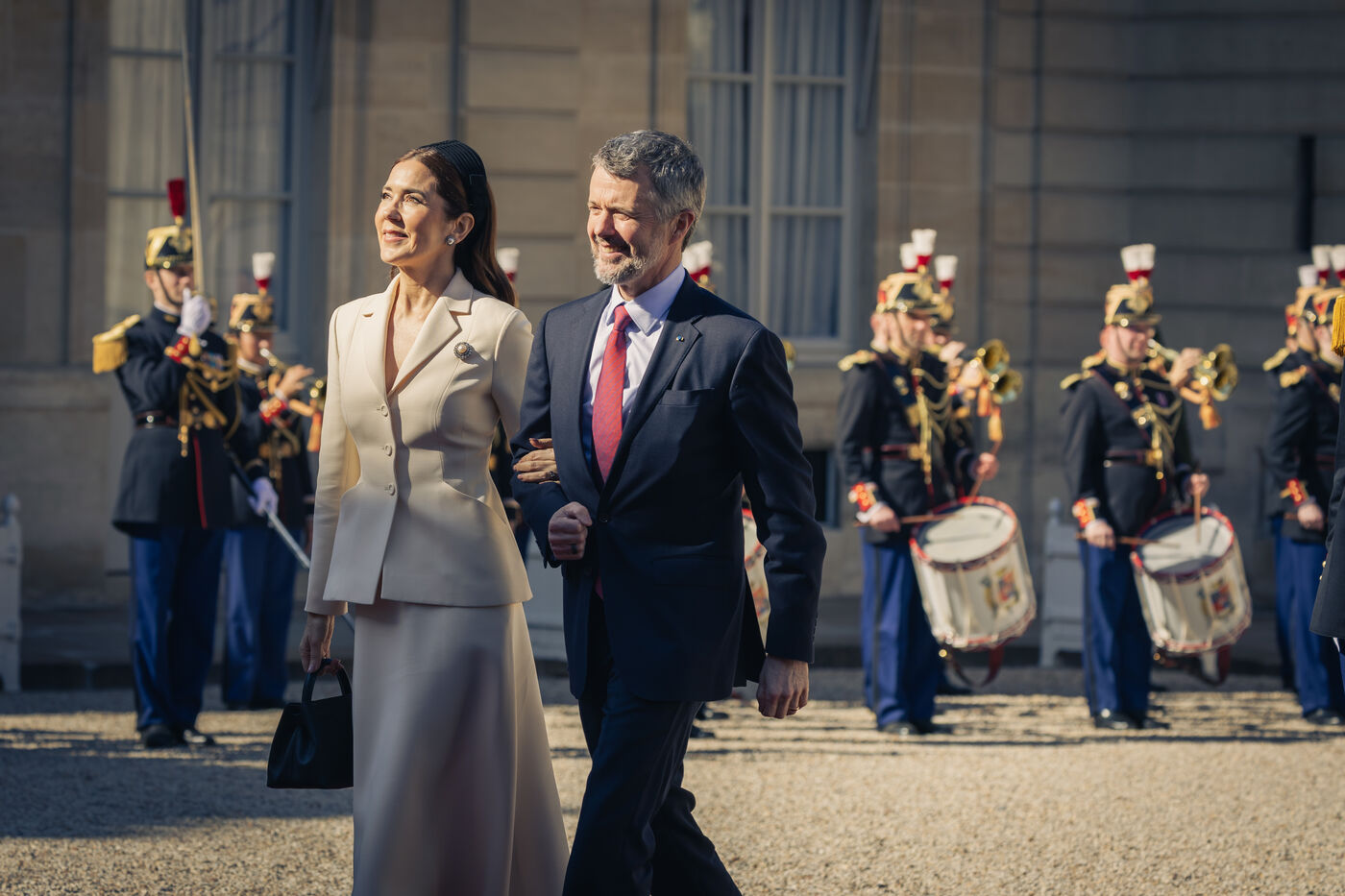 Frederik X and Mary received at the Élysée Palace for a State visit