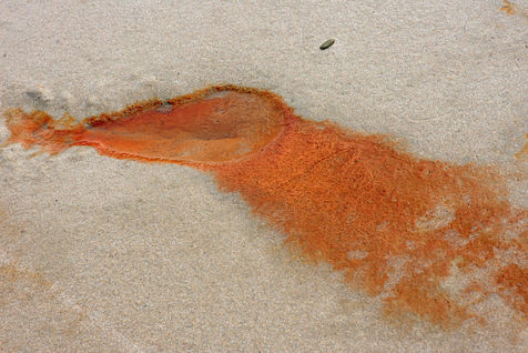 One can observe long rusty streaks, others oily, flowing towards the sea, west of the works in progress of RTE, for the wind site IBERDROLA.