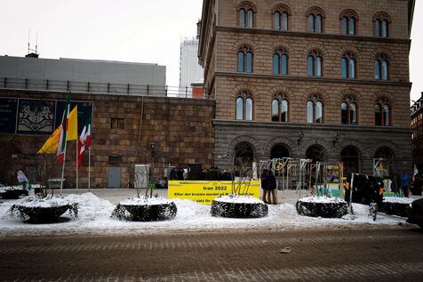 Différents collectifs de solidarité avec le peuple iranien réagissent à travers le monde - ici à Stockholm - dans le contexte d'une révolte engagée mi-septembre en Iran contre les exactions de la police tous azimut.