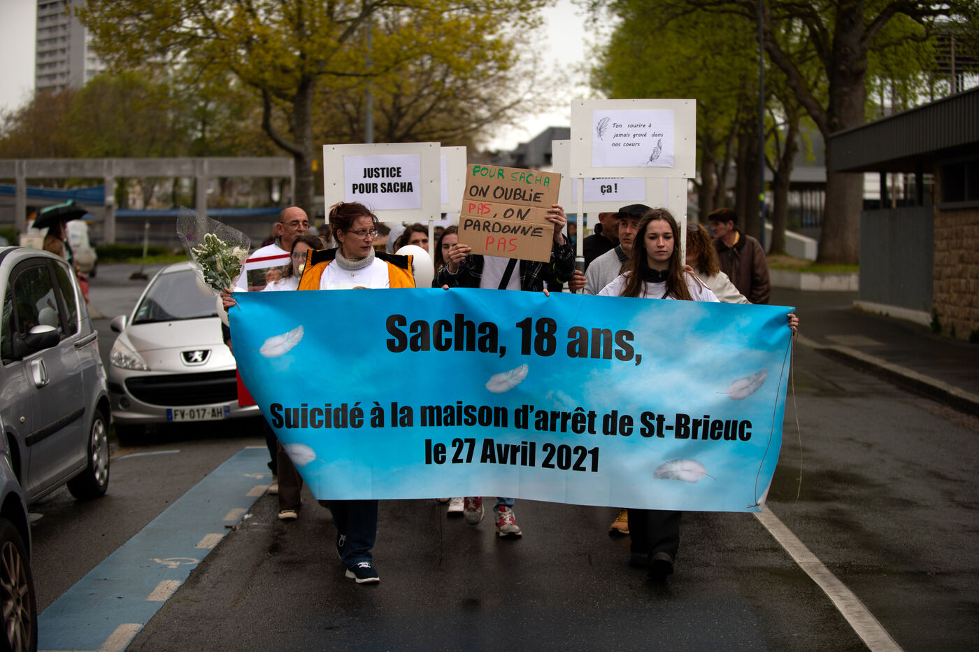 Two years after the death of Sacha, who had alerted us to the serious difficulties he had in enduring his conditions of imprisonment in the Saint-Brieuc prison, a commemorative march was held on 22 April 2023 in the presence of Sacha's family and his supporters. The family wished this march to be calm, while denouncing the dysfunctions of an institutional operation, which did not know how to take into account the psychological situation and the repeated requests of an 18 year old child. Today, she still demands justice and will not give up her fight, in memory of Sacha and for all the other young people who also died, or who would find themselves in the same situation.