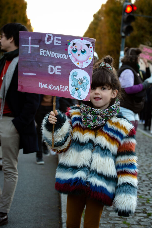 On the call of feminist inter-organisations including Nous féministes 35, Nouvelles Rênes, #NousToutes 35, Planning familial, Du pain et des roses, Solidaires 35, NPA Rennes, la France Insoumise 35, le Parti du gauche 35, FSU 35, FSE Rennes, and Puissance féministe, As part of the International Day for the Elimination of Violence against Women, 2,400 people demonstrated in Rennes to denounce the government's inertia in the face of violence against women, despite the persistence of feminicide in particular, and the lack of resources allocated.
