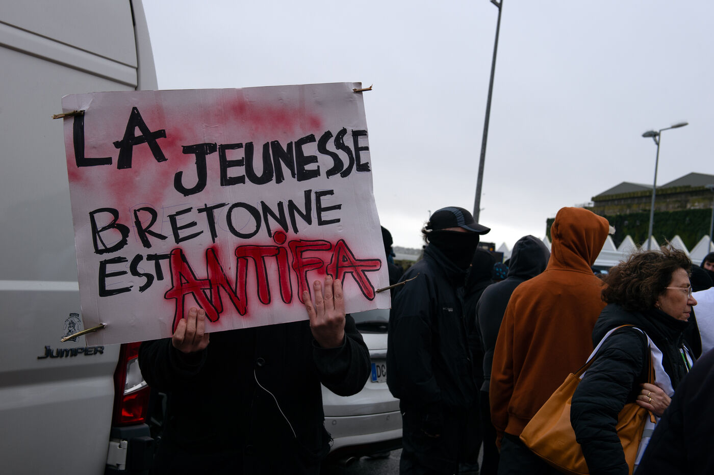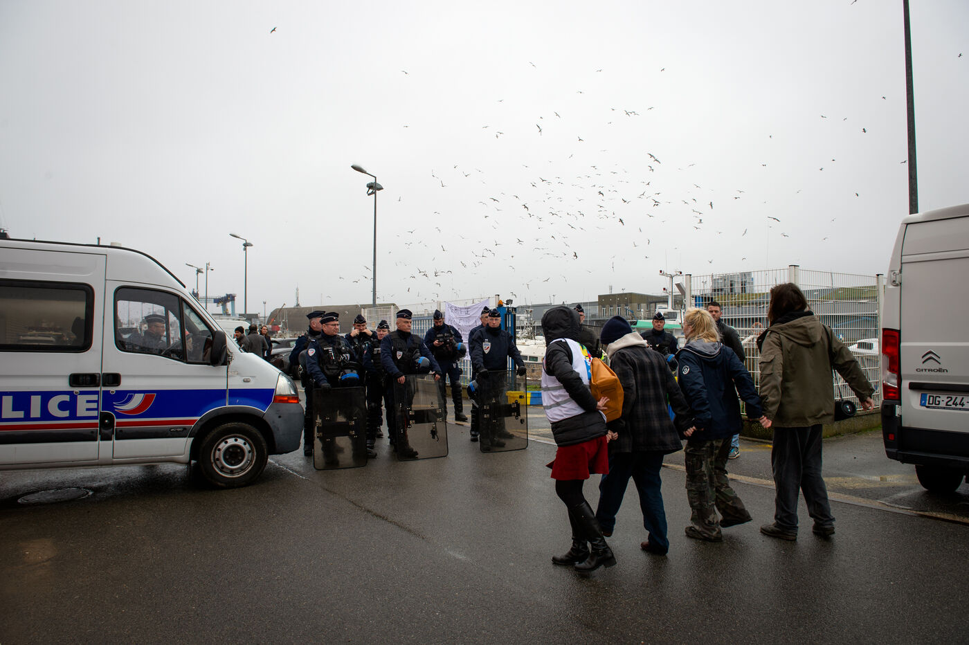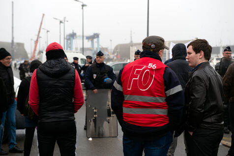Jordan Bardella, who had come to meet fishermen following the ban on fishing in the Bay of Biscay in order to protect dolphins from accidental fishing, came up against a counter-meeting involving several left-wing organisations, including Solidaires, the PCF, LFI, Union Pirate, the CGT, FSU and anti-fascist activists, who were prevented from doing so by a police roadblock protecting access to the pontoons.