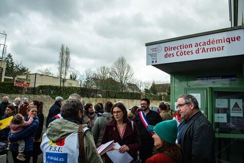 On Tuesday January 6, teachers' unions called another nationwide strike to protest teachers' working conditions. In Saint-Brieuc, Côtes d'Armor, several primary school unions called for a rally against the announced closure of 45 classes in the department.