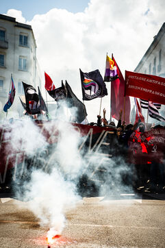 Since the abandonment of the refugee reception project in Callac (CADA), death threats against elected representatives and journalists, damage to the Butte Rouge site in Ploeuc-L'Hermitage, in the form of anti-Semitic tags, attacks, again in the form of Nazi tags on union and political party premises, armed attacks on the "La Serre" self-managed collective, the attack on the "Pour une Bretagne ouverte et solidaire" festival in Saint-Brieuc, regular threats and assaults on activists. e.s (..), antifascist resistance is organizing against the far right in Brittany.