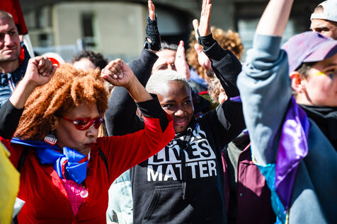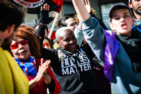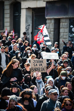 2000 personnes ont manifesté contre l'extrême droite et pour une justice sociale à Saint-Brieuc, le jour du 22ème anniversaire de l'accession du Rassemblement national au second tour de la présidentielle de 2002.