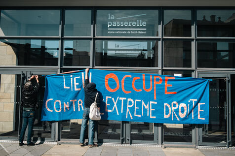 On the initiative of the Front commun de Saint-Brieuc, which was set up in response to the numerous far-right exactions in Brittany, some forty activists have begun an occupation for an antifascist and feminist riposte at the Théâtre de la Passerelle, Saint-Brieuc's national stage. An initial general meeting was held to lay the foundations for the operation of this fledgling occupation.