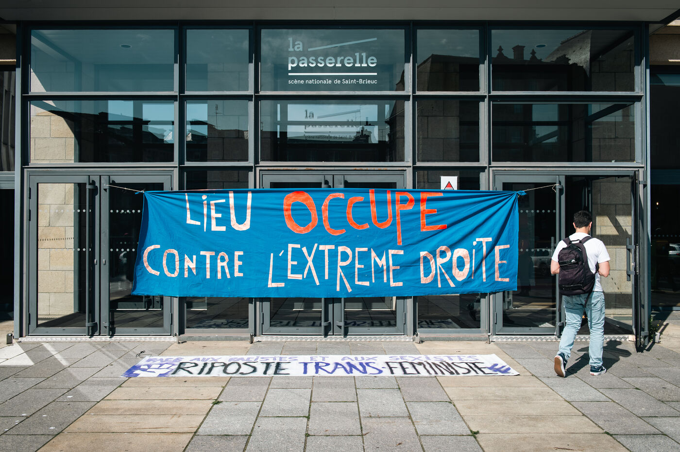 A l'initiative du Front commun de Saint-Brieuc, qui s'était créé suite aux nombreuses exactions de l'extrême-droite en Bretagne, une quarantaine de militantes et militants ont débuté une occupation pour une riposte antifasciste et féministe au théâtre de la Passerelle, scène nationale de Saint-Brieuc. Une première assemblée générale a eu lieu, de façon à poser le socle du fonctionnement de cette occupation naissante.