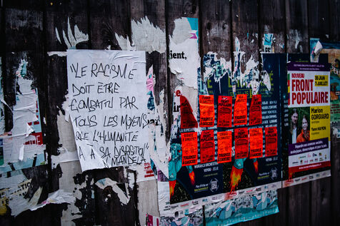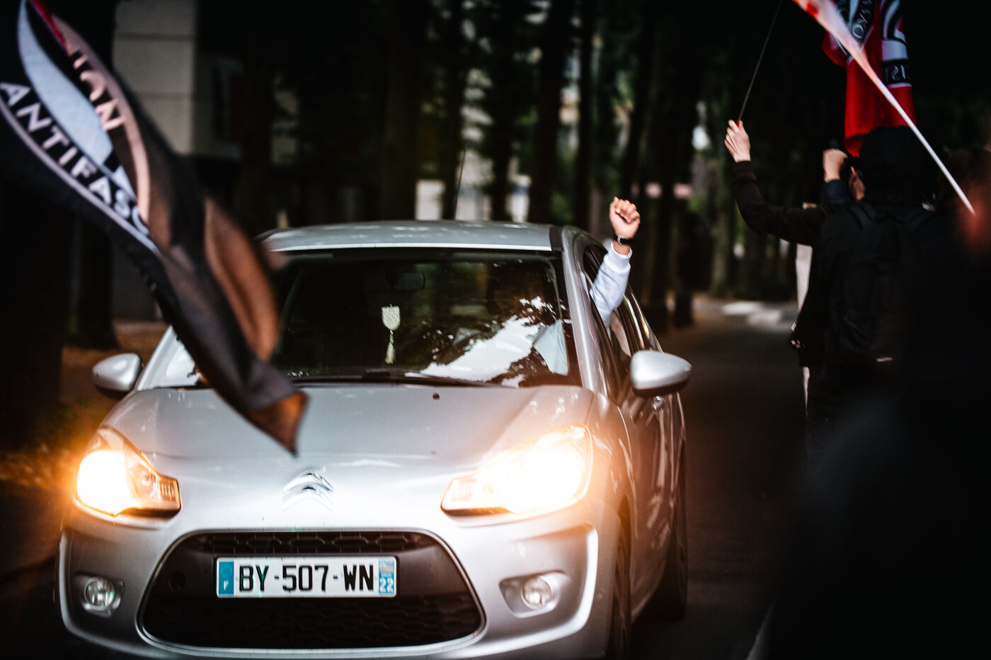Manifestation sauvage antifasciste, peu après l'annonce des résultats du second tour des élections législatives, suite à une prise de parole du Collectif de vigilance antifasciste qui appelle à ne pas relacher la pression, face à une menace fasciste bien réelle, malgré les résultats et le soulagement teinté d'espoir qui se lisait sur les visages des manifestant.e.s présent.e.s.