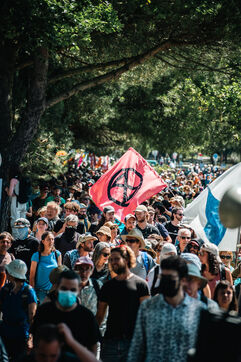 A protest, festive, poetic and aesthetic, aimed at occupying the Port of La Rochelle, with 10,000 demonstrators on land and in the water, repressed at the end by the forces of law and order, despite the peaceful nature of the action and the impressive collective mastery of the organizations.