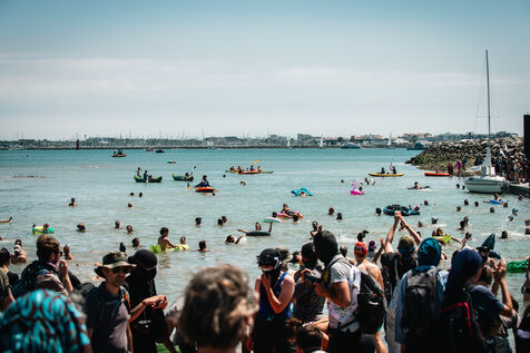 Manifestation revendicative, festive, poétique autant qu'esthétique, à vocation d'occupation du Port de la Rochelle, forte de la présence de 10 000 manifestant.e.s, à terre et dans l'eau, réprimée sur sa fin par les forces de l'ordre, malgré le caractère pacifique de l'action et la maitrise du collectif sans faille des organisations.