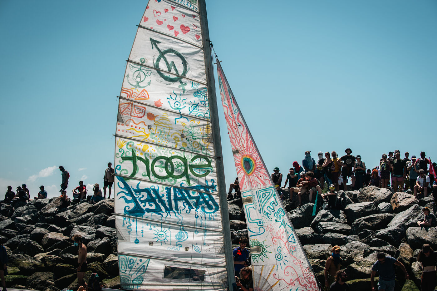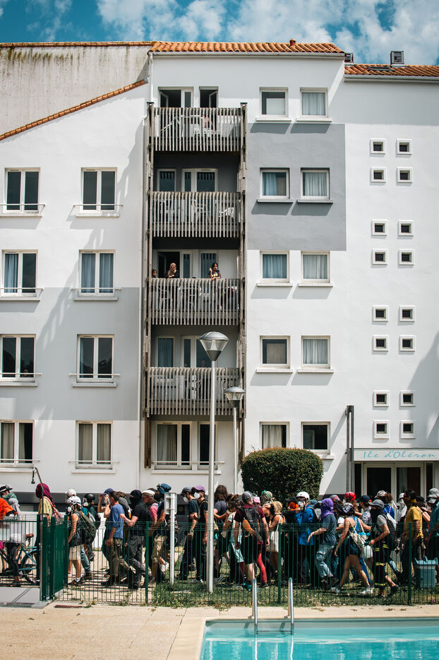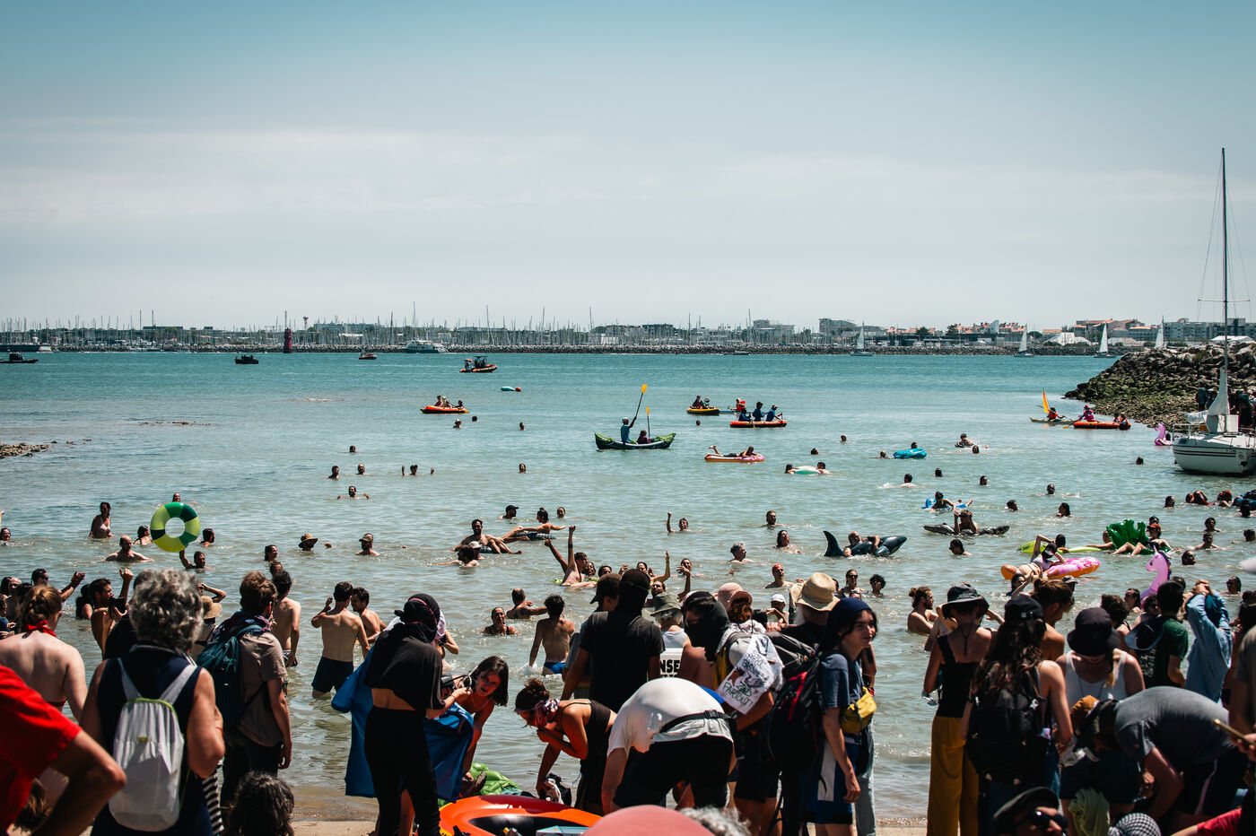 A protest, festive, poetic and aesthetic, aimed at occupying the Port of La Rochelle, with 10,000 demonstrators on land and in the water, repressed at the end by the forces of law and order, despite the peaceful nature of the action and the unfailing collective control of the organizations.