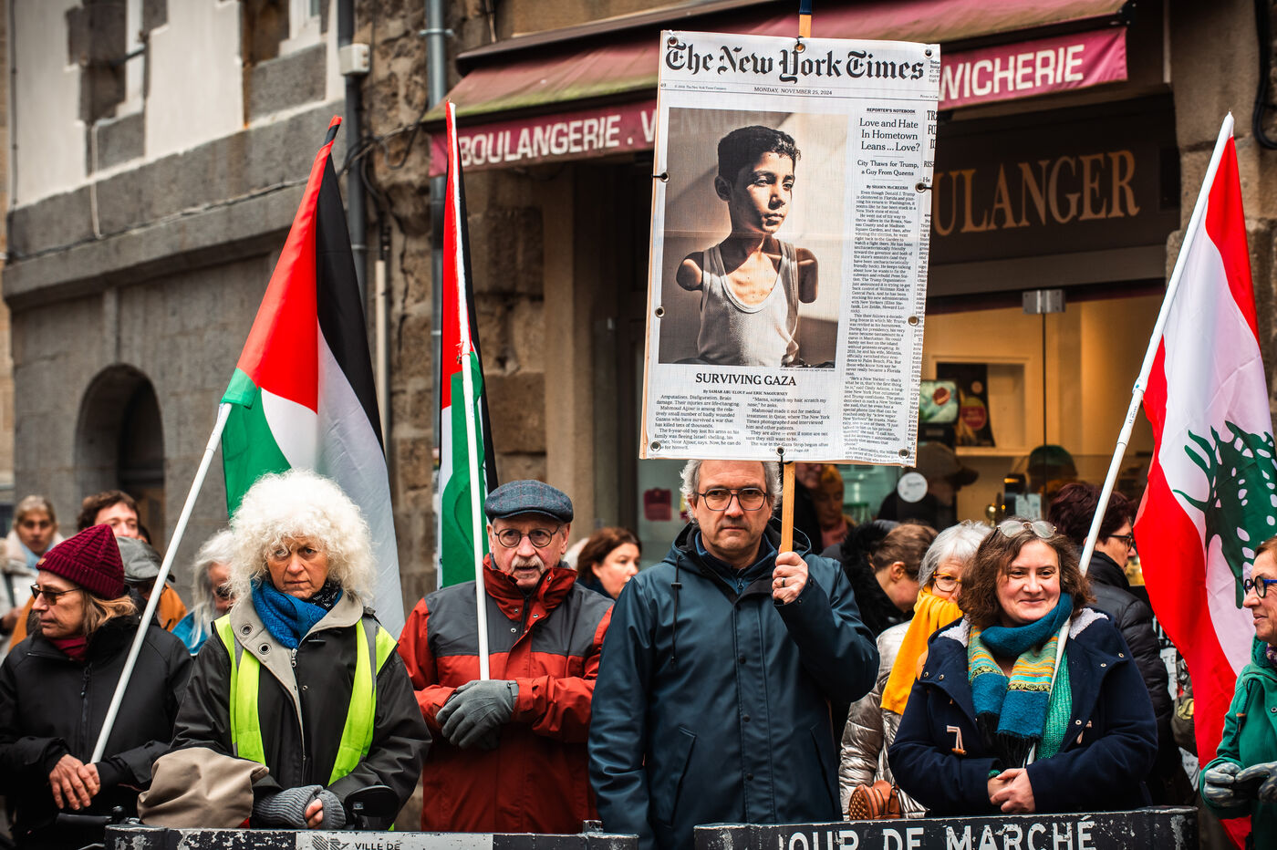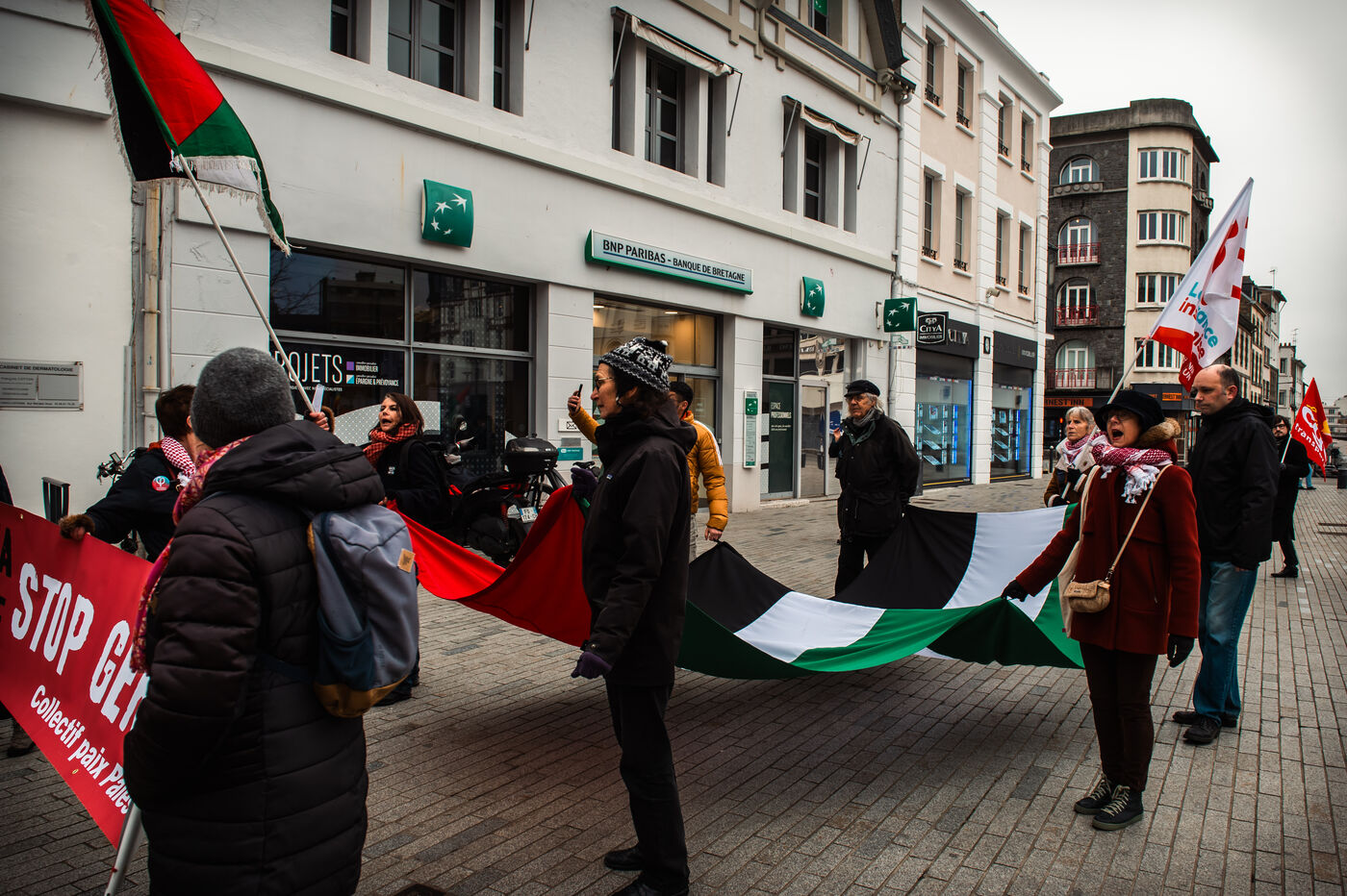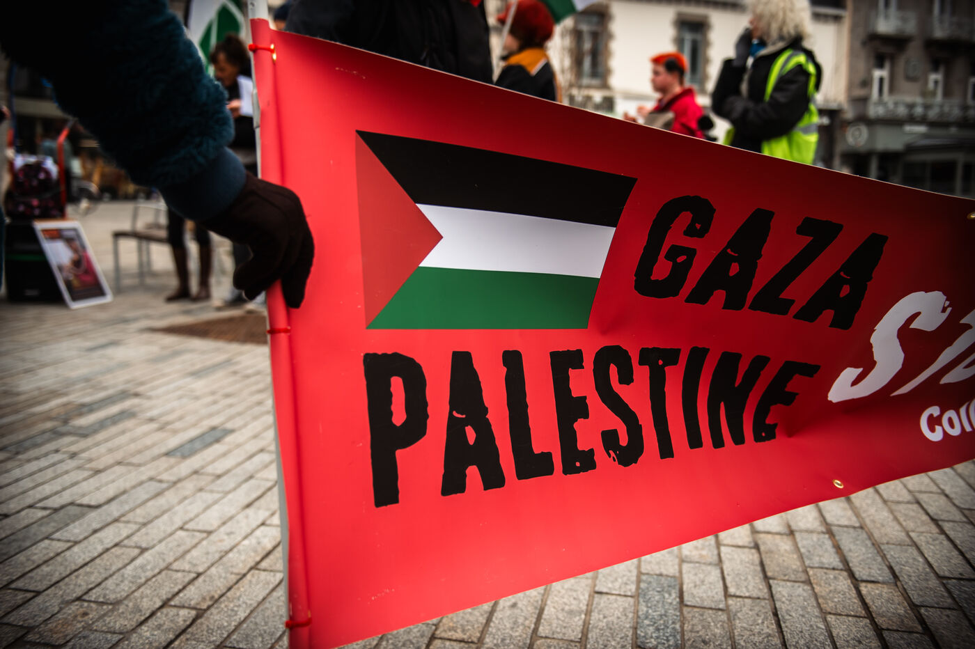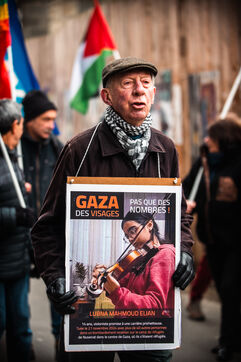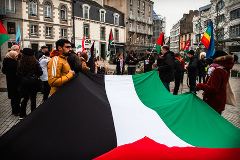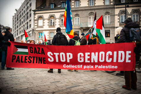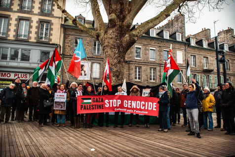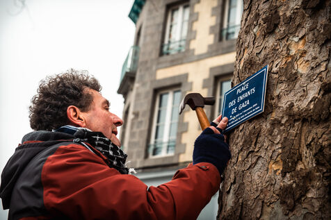 Event organized by the “Paix Palestine” collective in tribute to the children killed, injured or starved to death in Gaza. A commemorative plaque bearing the inscription “Place des Enfants de Gaza” (Gaza Children's Square) and referring to the period from October 7, 2023 to December 7, 2024, evoking the more than 16,000 children killed or who died of hunger in Gaza, was fixed to a tree in Saint-Brieuc town center.