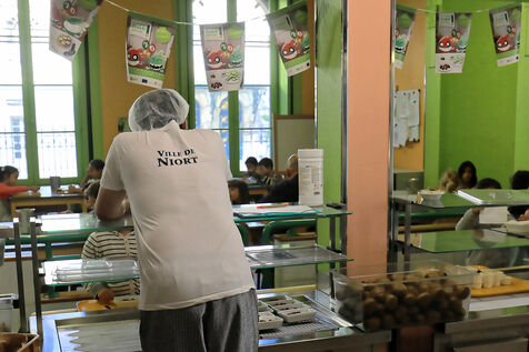 Pupils at a primary school in Niort, Deux-Sèvres, have lunch in the canteen. They choose their dish, eat and finally sort the waste before putting down their cutlery.