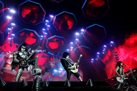 Kiss, American hard rock band on stage at Hellfest.