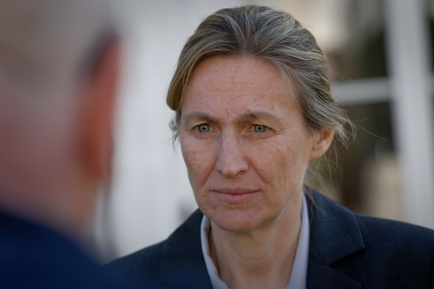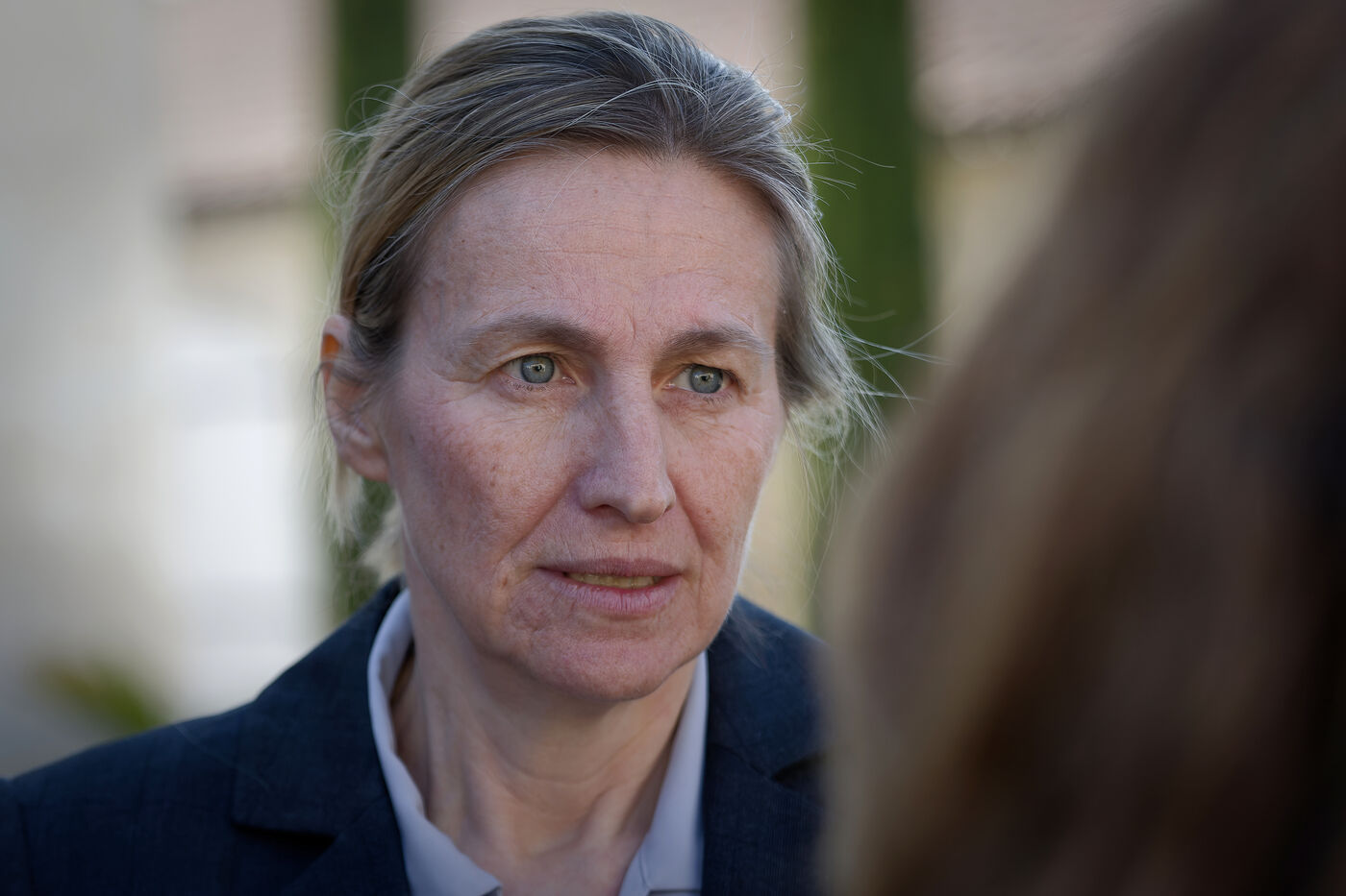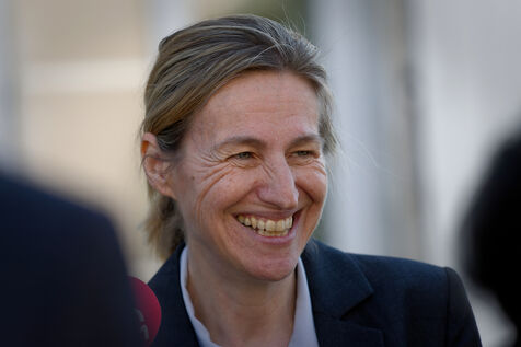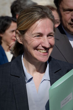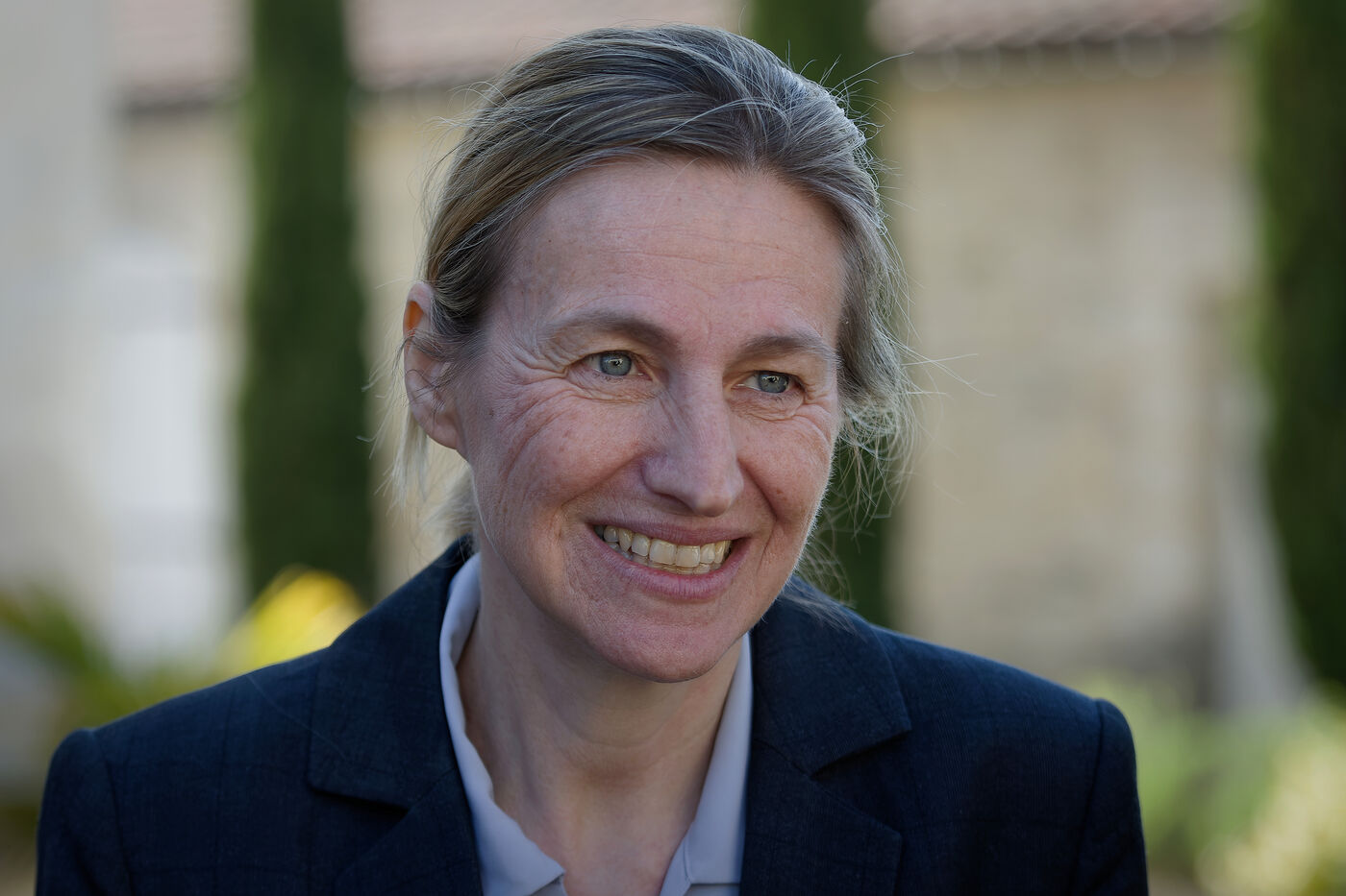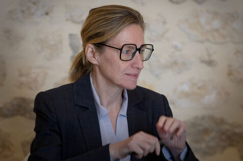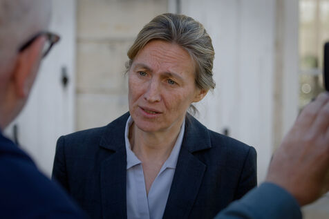 Astrid Panosyan-Bouvet, the French Minister for Labour and Employment, came to Sireuil in the Charente region of France to visit a cognac distillery and talk to those involved in the industry, which is being tormented by the international situation, including customs duties.