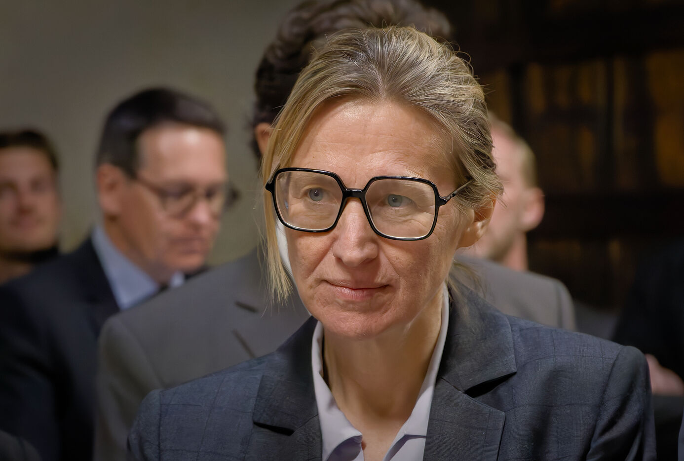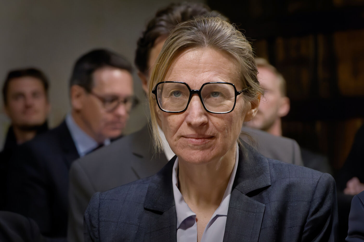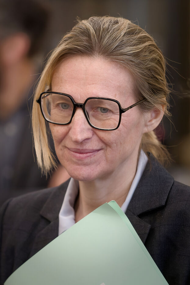 Astrid Panosyan-Bouvet, the French Minister for Labour and Employment, came to Sireuil in the Charente region of France to visit a cognac distillery and talk to those involved in the industry, which is being tormented by the international situation, including customs duties.