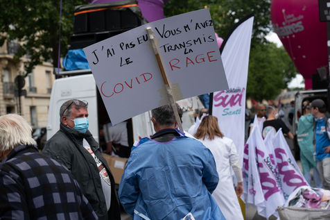 Mardi 16 juin 2020, alors que se tient le Ségur de la Santé à Paris, des milliers de soignants de toute la France ont manifesté dans la capitale à l'appel des syndicats, du Collectifs Inter-Hôpitaux et « Bas les masques » créé suite à la crise du Covid-19 et dans la continuité de la grève des urgentistes pour la défense de l'hôpital et pour réclamer plus de moyens et de personnel pour assurer leur mission ainsi qu?une revalorisation de leur salaire.