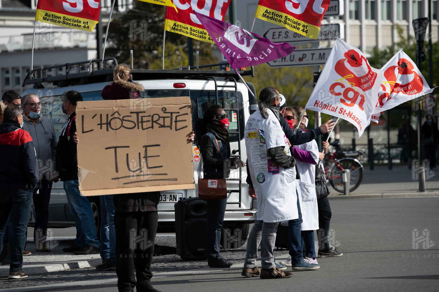 On Thursday 15th October 2020, as France enters the 2nd wave of the Covid-19 epidemic, around 800 health workers demonstrated again in Nantes following the call by the unions and collectives (Bas Les Masques, Collectif Inter-Hôpitaux, Collectif Inter-Urgences, Collectif Santé en Danger) to demand more resources for hospitals and to point out the inadequacies of the agreements resulting from the Health Segur.