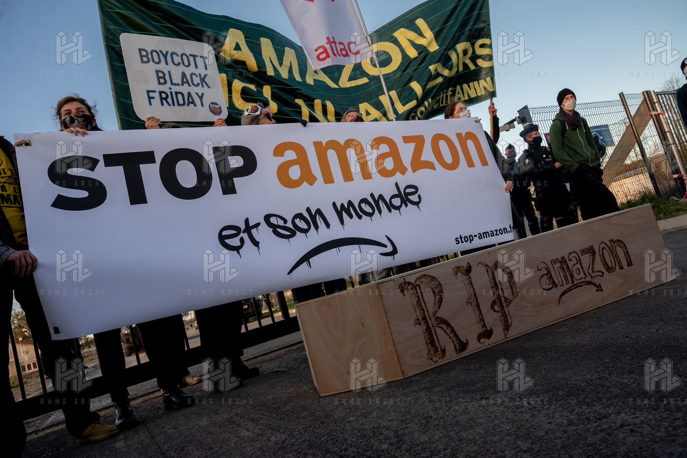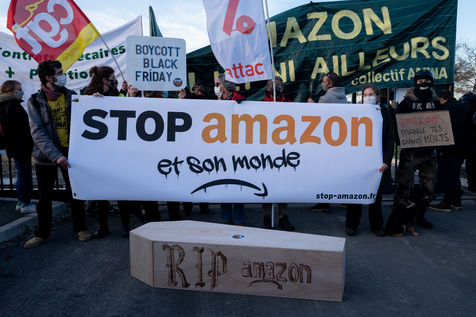 Samedi 28 novembre 2020, 2.000 personnes se sont à nouveau mobilisées à l?appel du collectif « Stop Amazon 44 » contre l?implantation d?un entrepôt Amazon à Montbert au sud de Nantes (Loire-Atlantique). Les manifestants reprochent à la multinationale son modèle économique basée sur la sur-consommation et son impact environnementale.