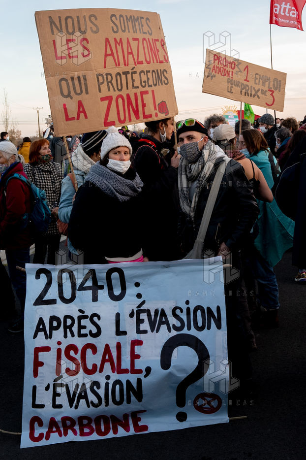 On Saturday, November 28, 2020, 2,000 people once again mobilized to the call of the collective "Stop Amazon 44" against the establishment of an Amazon warehouse in Montbert south of Nantes (Loire-Atlantique). The demonstrators criticized the multinational for its economic model based on over-consumption and its environmental impact.