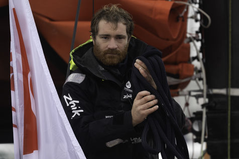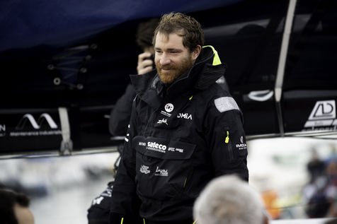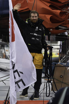 Arrivée du skipper Benjamin Dutreux (Imoca OMIA-Water Family) aux Sables d'Olonne le 29 janvier 2021. Il termine 9ème du Vendée Globe 2020.