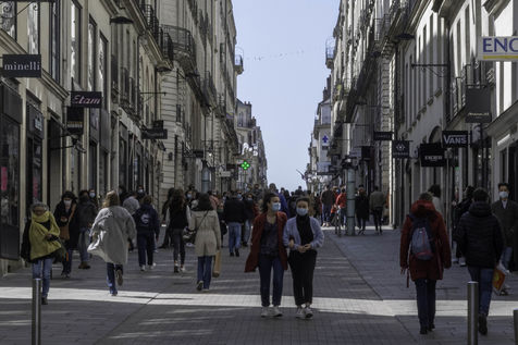 Ambiance samedi 3 avril 2021 à Nantes à quelques heures de l'entrée en vigueur du troisième confinement pour endiguer la troisième vague épidémique de Covid-19.