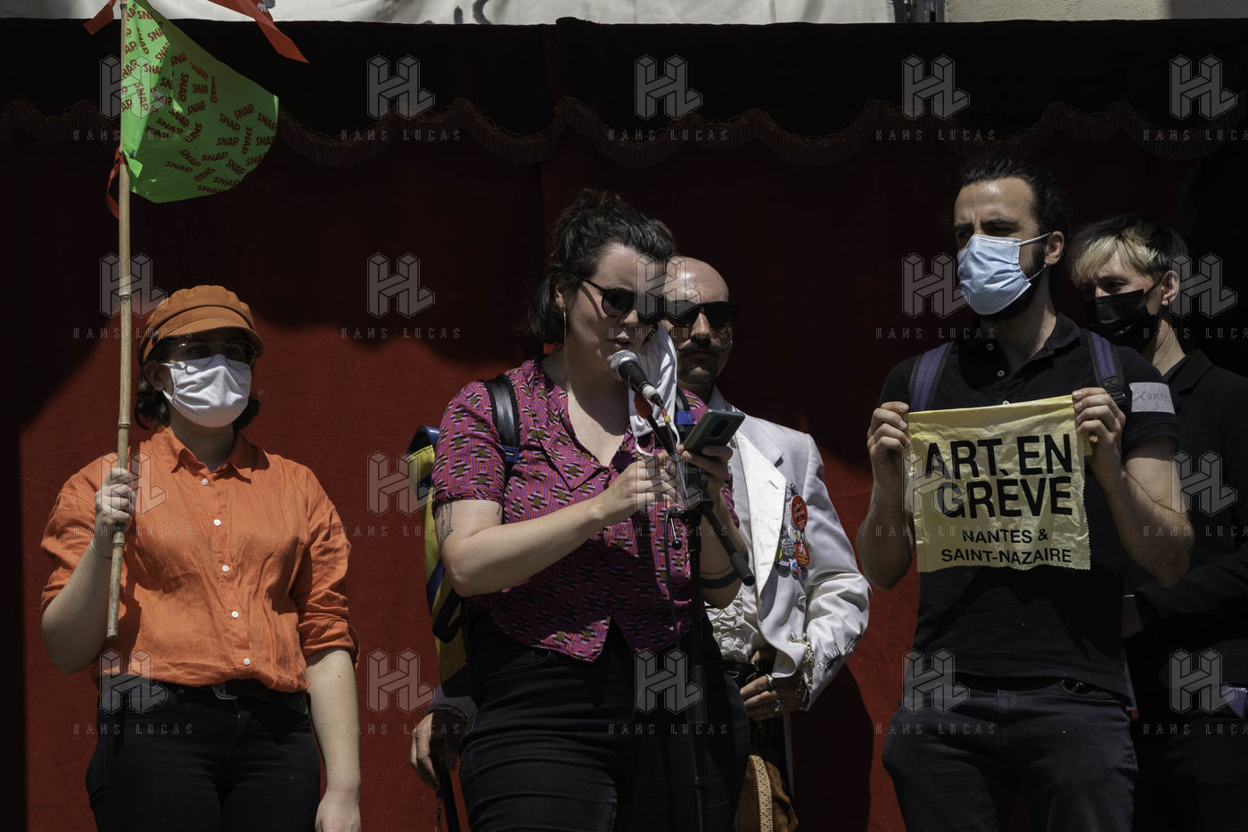 Demonstration against precariousness and unemployment insurance reform on Friday 23 April 2021 in Nantes organised by the cultural actors occupying the Graslin theatre and the inter-union (CGT,FSU, FO and Solidaires).