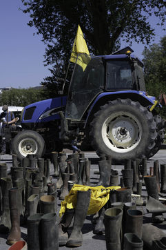 A cette occasion, les agriculteurs membre de la Confédération Paysanne ont manifesté en déposant leurs bottes devant la préfecture, « pour symboliser les paysans que les politiques agricoles successives ont fait disparaître » et pour dire qu?il y a autant de postes à pourvoir.