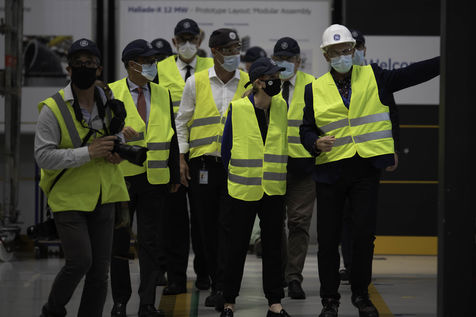 Agnes Pannier-Runacher, Minister Delegate in charge of Industry, visited the General Electric Renewable Energy plant in Montoir-de-Bretagne (Loire-Atlantique) which produces the offshore wind turbines that will equip the first French wind farm off Saint-Nazaire.