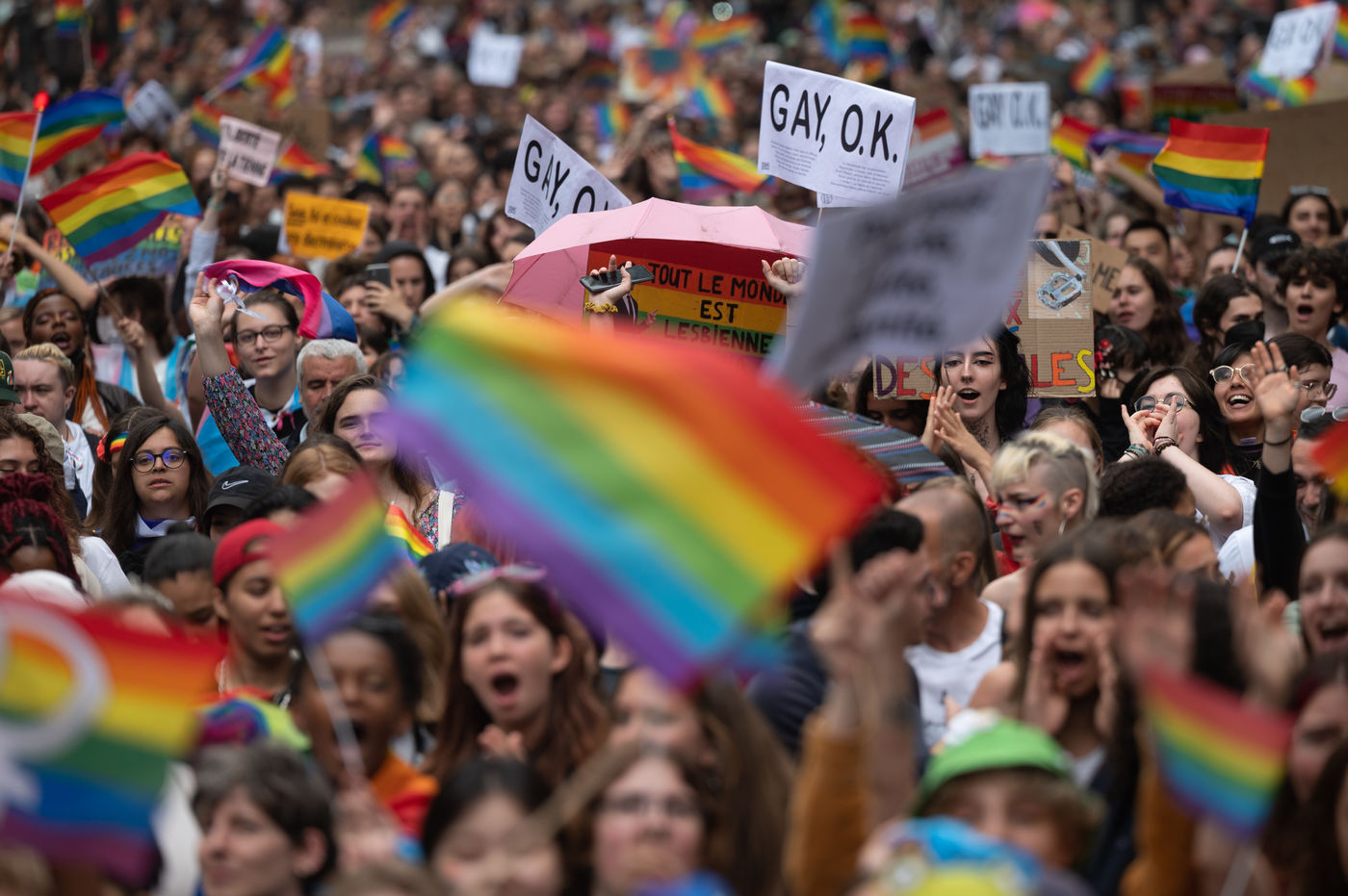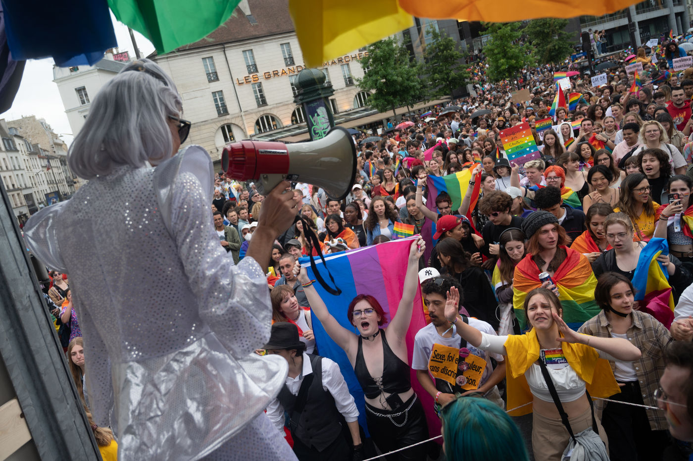 After a cancellation in 2020 because of Covid-19 and a reduced format in 2021, the Paris/Ile-de-France Pride March organised by Inter-LGBT returned to the streets of the capital to demand equal rights for heterosexual and LGBTQI+ (lesbian, gay, bisexual, transgender, queer and intersex) people. The festive and colourful procession marched from the Michel Bizot metro station to the Place de la République.